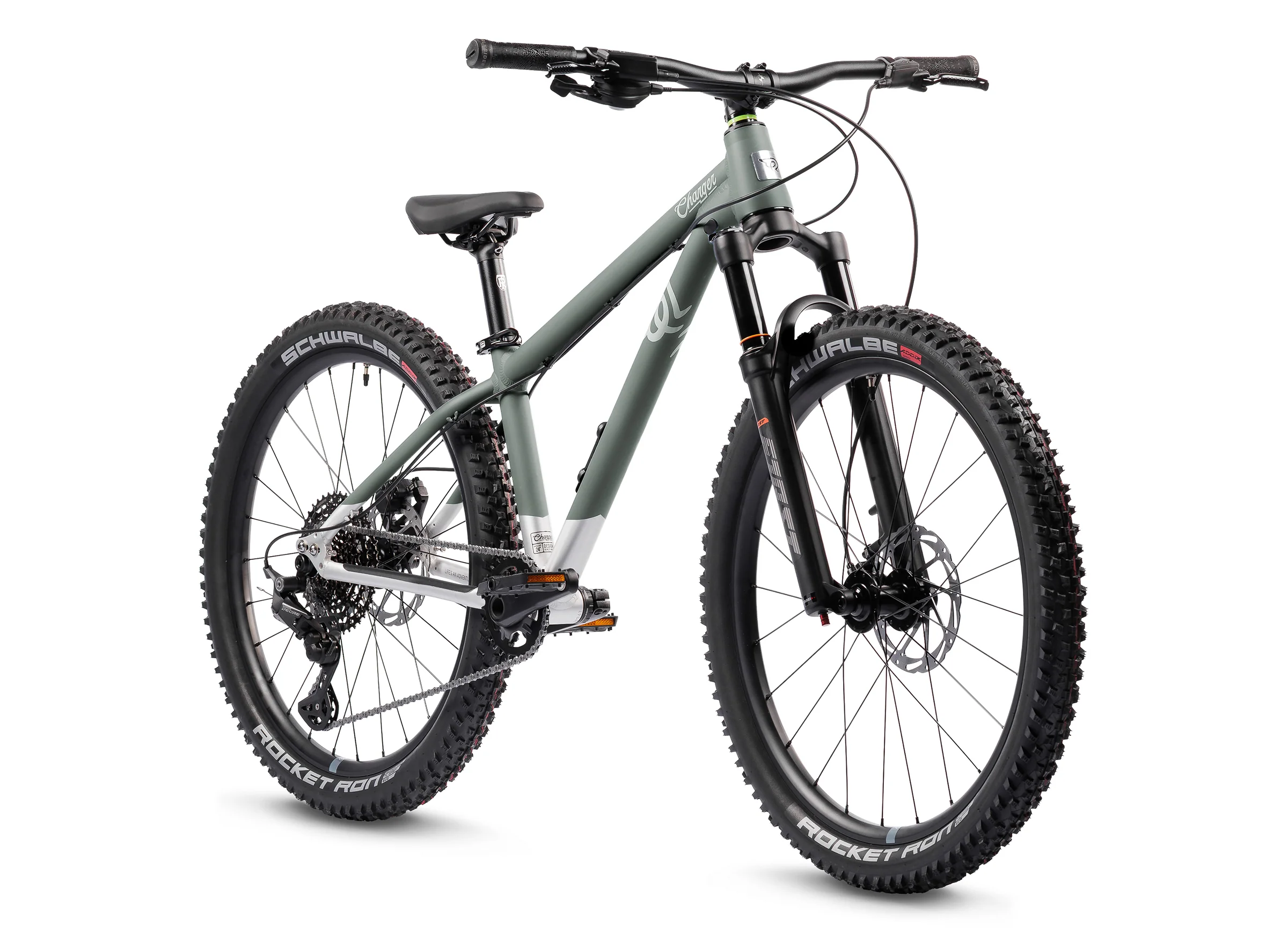 The Charger 24 is a trail-ready 24" hardtail built for young shredders who are serious about mountain biking. With 120mm RST air forks, a lightweight yet rugged frame, and trail-focused geometry, the Charger 24 delivers the control and confidence needed to tackle technical terrain. The Shimano CUES 10-speed drivetrain provides smooth, reliable shifting across varied inclines, while powerful Tektro hydraulic disc brakes offer dependable stopping power in all conditions. Sealed bearing wheels and wide 2.25" tires ensure grip and stability on loose or uneven ground. A 130mm crankset enhances pedalling efficiency for growing legs. Built to grow with the rider and ready for real adventures, the Charger 24 is the ultimate ride for kids ready to take on serious trails.